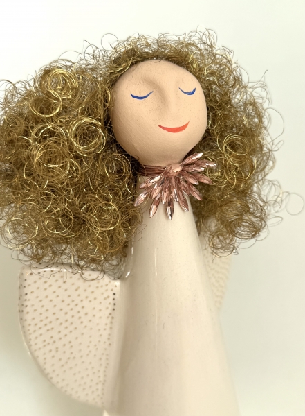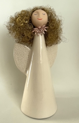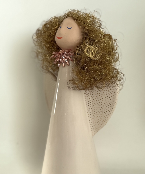 Anjel Strážny z keramickej dielne Barbory Šunovej . Výška 27cm. Každý jeden je originál. Zabalený je v darčekovej krabičke. Dekorovaný zlatom a kryštálovým šperkom.