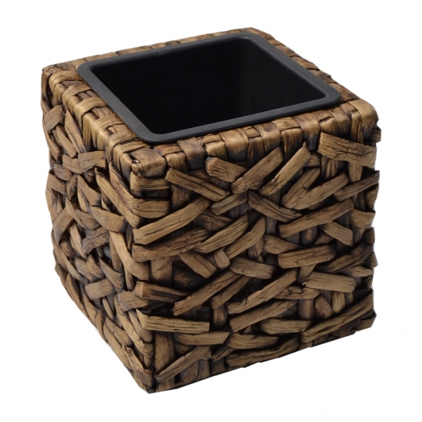 Dekoračný kvetináč,kocka.Materiál : vodný hyacint,vo vnútri je vyberateľná plastová vložka. Rozmer : 25x25cm